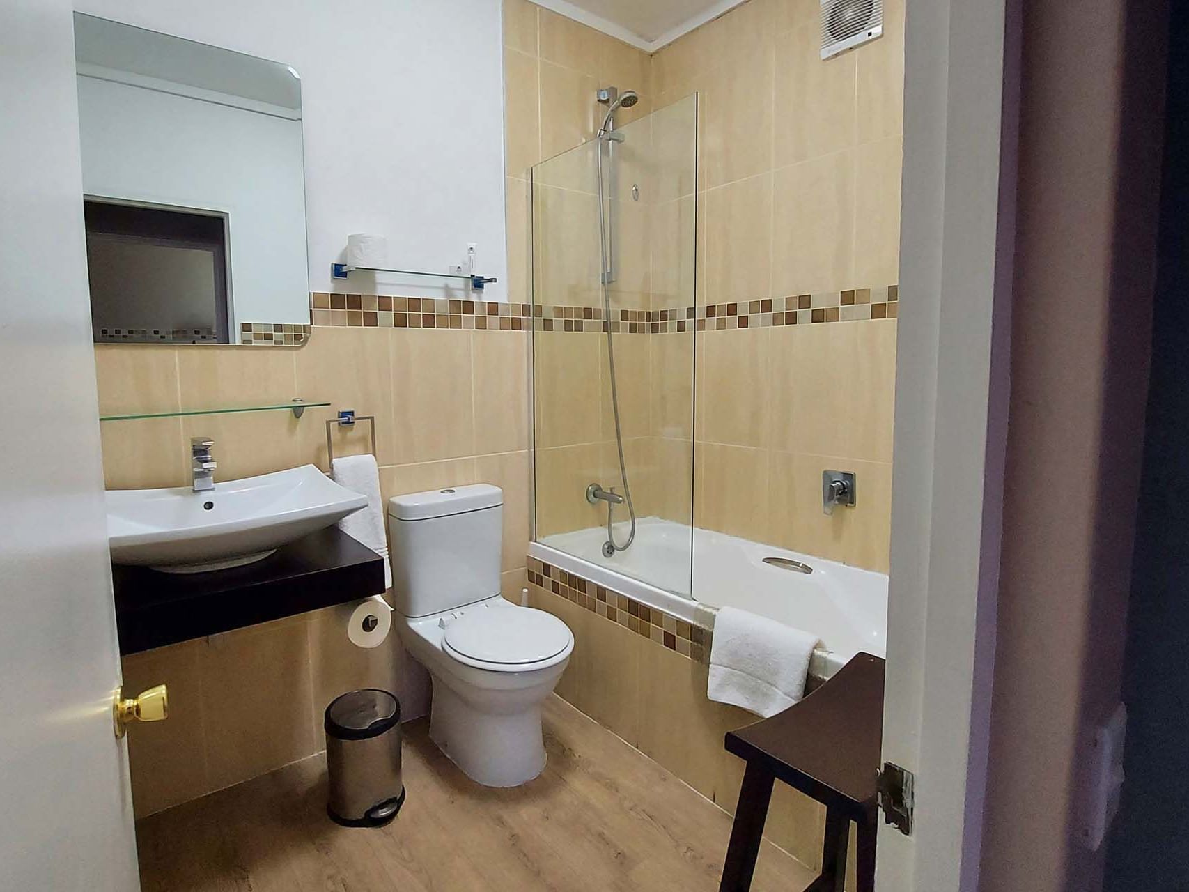 •These spacious, open-plan apartments include a main bedroom with queen-bed and separate bathroom with a shower over the bath, a toilet and a basin.