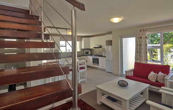 Our semi-detached 2 bedroom units are the perfect lock-up and go holiday pads. The unit includes a fully equipped open plan kitchen, a master bedroom with queen-size bed and a second bedroom with two single beds. Upstairs there is a full bathroom and downstairs a guest toilet and basin.