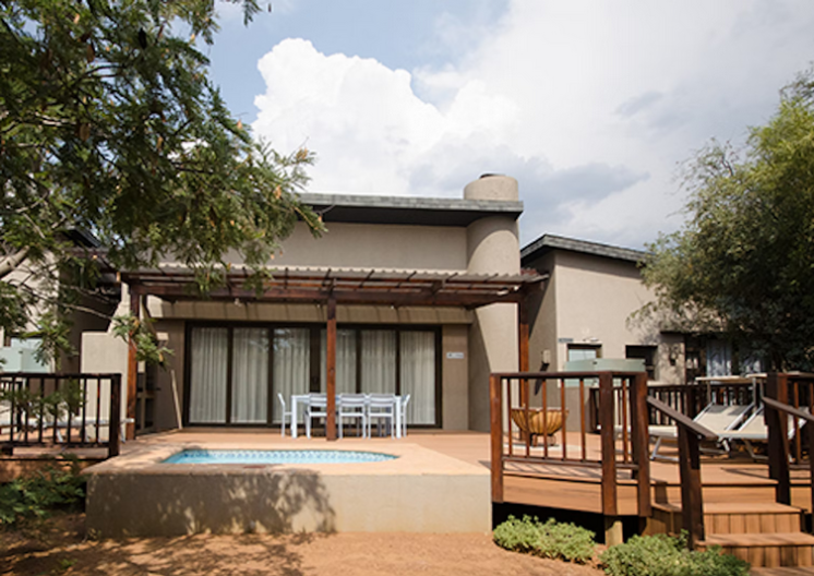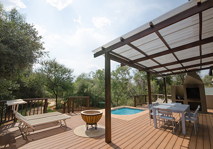 Separate entertainment area with exclusive access to a fully equipped kitchen, lounge, braai, splash pool and fire pit
