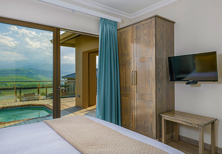 Fully self-catering Villa sleeping maximum 2 adults and 2 children and 1 infant under 2 in a cot. Consists of 1 room with a queen size bed and a en-suite bathroom Lounge with 2 single sleeper couches (only suitable for 2 children under 12 years)